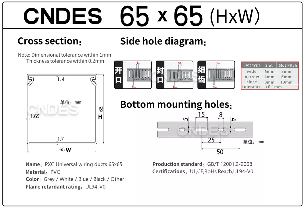 Како професионален производител, би сакале да ви обезбедиме CNDES дупчиња 65 × 65 ПВЦ кабли Raceway.