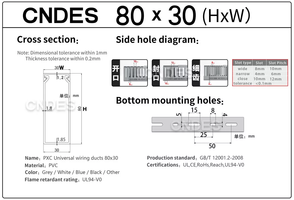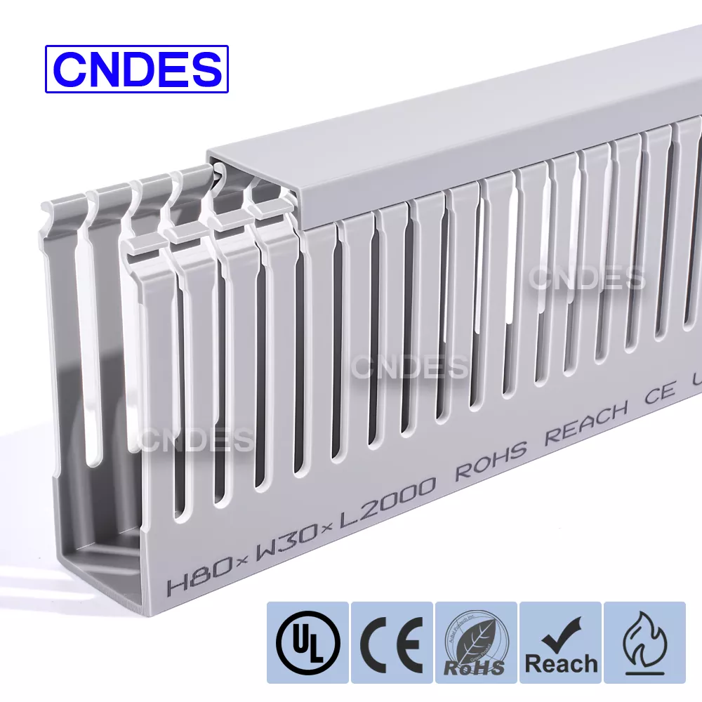 ПВЦ канали за жици со отворени 80×30 високи перформанси на CNDES се дизајнирани за ефикасно, организирано и флексибилно управување со кабли во индустриски контролни панели, електрични кабинети и кабинети за автоматизација. Со висина од само 30 mm и ширина од само 80 mm, овие компактни канали обезбедуваат решение за управување со кабел со висока густина, истовремено олеснувајќи ја инсталацијата, одржувањето и идните надградби.
